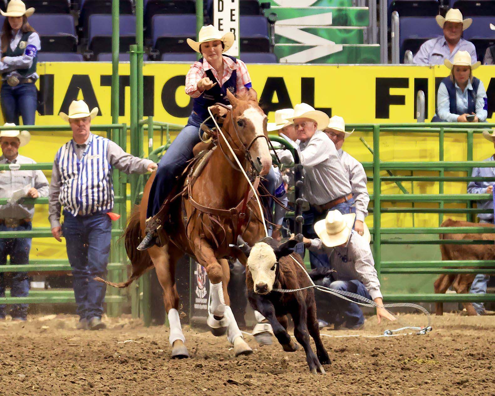 Breakaway Roping: (first-round winners) 1, Winter Williams, Southwest Oklahoma State University, 1.9 seconds. 2, (tie) Grace Felton, Lassen College, and Zoie Bedke, Idaho State University, 2.1. 4, Harley Lynn, Southern Arkansas University, 2.2. 5, Abbie Shofner, New Mexico State University, 2.3. 6, Alli Masters, Northeastern Oklahoma State University, 2.5, 7, Courney Peters, Black Hills State University, 2.7. 8, (tie) Tanegai Zilverberg, Mitchell Technical Institute; and Jade Boote, Dickinson State University, and Catherine Clayton, Cochise, College, 2.8 seconds.