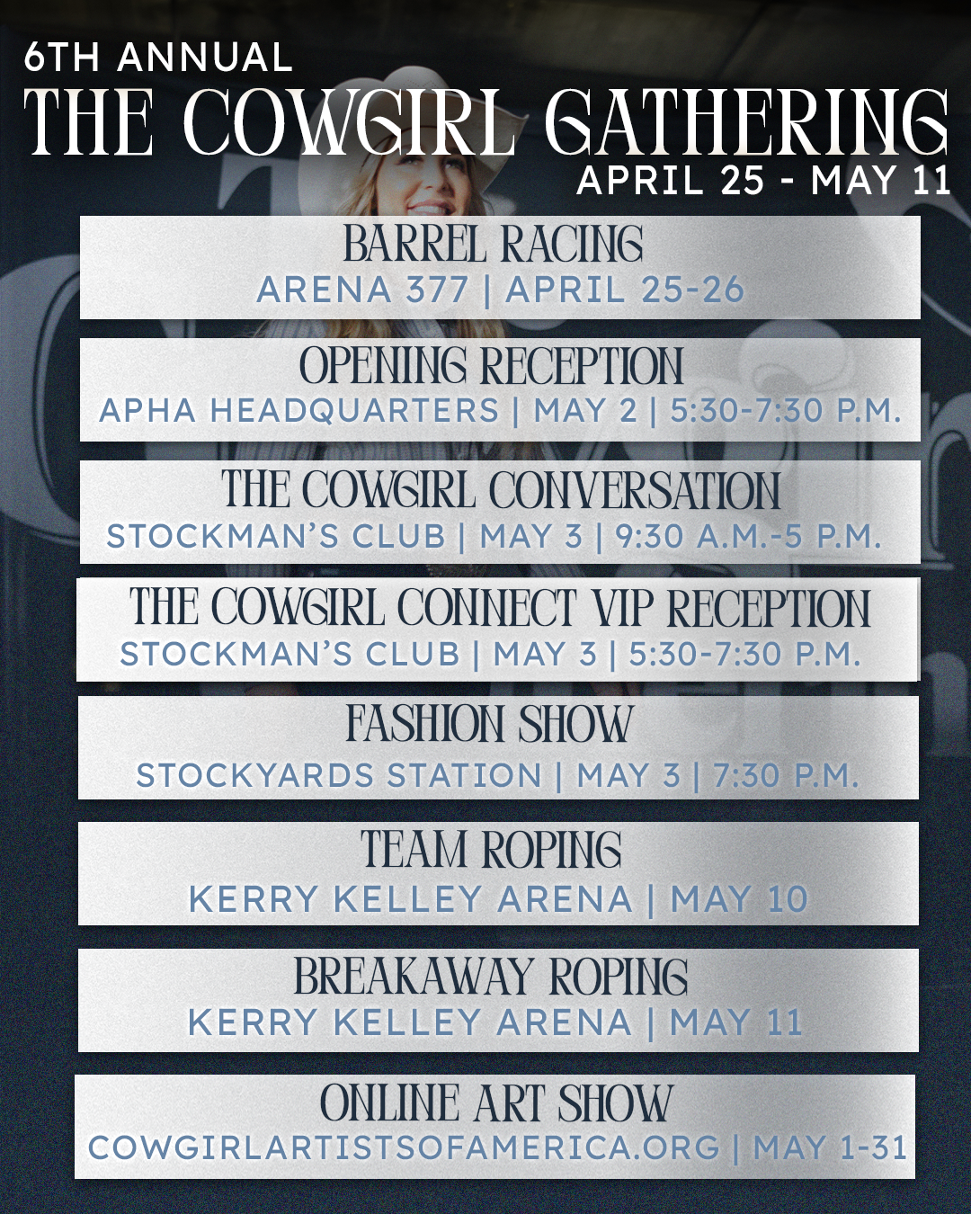 Like her daughter, Haley Proctor grew up in rodeo. Her father rode bulls in the PRCA, and her uncle, Shawn Brackett, is a well-known specialty act performer, which inspired her to try trick riding. When she was only five years old, she started imitating her uncle by hanging off the side of her horse. Her parents decided she should learn how to do things safely and correctly, so she spent her youth learning to do all of the classic trick-riding maneuvers. Haley performed for the first time when she was 6 years old, competed in barrels, and roped throughout her youth. She knew she wanted to pursue performing professionally after high school, and bought her PRCA card when she turned 18. Since then, Haley has performed at PRCA rodeos across the country, including the National Finals Rodeo. Haley has been nominated for the Top Five Specialty Act of the Year for the PRCA six times. She continues to train horses and run barrels.