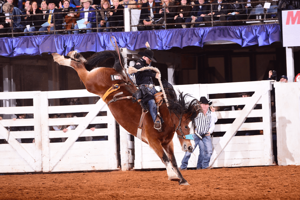 His most recent win was last year when he broke the record for the highest bareback riding score ever recorded in Fort Worth – 93 points. This year he has dominated Bracket 2, winning the first round Sunday afternoon with a 90-point ride, then tying his own arena record Monday night with a 93-point effort on Pickett Pro Rodeo’s horse Night Crawler. He will continue his quest for another FWSSR bareback riding title when he returns for the Semi-finals February 2-3.