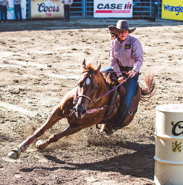 “You’ve got more driving, but a lot of it’s easier because you get there, and you’ve got all day to just rest until your run, and you don’t have as many horses to take care of because you can only run one horse at the rodeo,” Kim says. “We go to the futurities and the derbies, and we may carry 9-10 horses so that’s a whole bunch to take care of,” she laughs and adds of rodeo, “It’s a whole different life. You’ve got a whole different set of people, and you have no idea what the ground is going to be like when you get there. You have no idea what the weather is going to be. You just have to adapt or don’t run, which I did that a few times this year,” she laughs, but adds seriously, “it’s all about your horse. You can’t do it without your horse so you’ve got to take care of them first.”