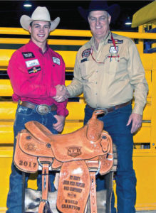2017 JR NFR Steer Wrestling Champion Bridger Anderson with Ote Berry – Rob Pierce
