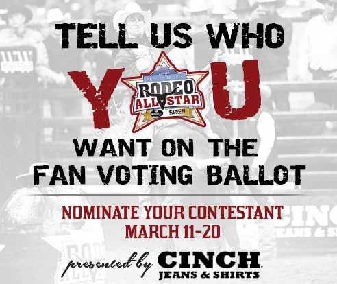 Rodeo and sports fans across the country are being asked to nominate their favorite rodeo contestant to get a spot on the Rodeo All-Star Fan Voting ballot presented by Cinch Jeans. The 2015 Nomination & Fan Voting rules are as follows:
