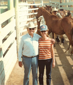 When Benny Binion was sent to the penitentiary over income tax, when Brenda was 12, she was very sad because she didn’t get to go to the ranch. She just knew no one would take care of the horses, and she couldn’t see them. He didn’t get released until 1957, on a technicality. Turned out Brenda was right. The hired hands that were left to tend to things on the ranch were told not to sell the horses, but they did sell the cattle. When the hired hands heard Benny was out they disappeared. There was only one filly left. “We had no idea where they went, and those that were left had gotten down in the Missouri breaks, so Ted and I started riding the Missouri River breaks trying to find them. The horses knew the trails but we didn’t. It took years and since none of the studs had been cut we ended up gathering nearly 1,200 horses. Two that we found were named ‘Happy’ and ‘Sappy’. We took them to a rodeo and boy could they buck,” said Brenda with a big smile. “We took nineteen horses, including Happy and Sappy, to Harry Knight at Great Falls and he bought them and they ended up in a rodeo in Belgium. Benny recognized Brenda’s interest in the horses and although she was only seventeen he asked her to register all their horses with the American Quarter Horse Association. “The inspector came from Amarillo to inspect them, they were all cataloged. Every summer they would upgrade until they got papers.