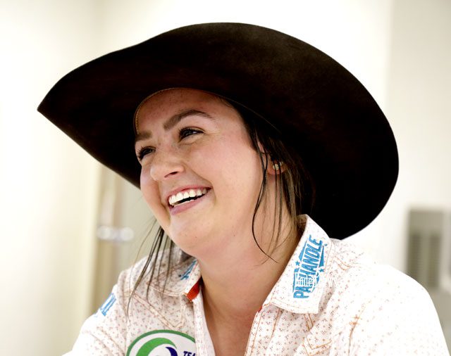 Cashen Turner made it back to the short go in three events, barrel racing, breakaway roping, and pole bending and is the 2018 IFYR All Around Champion. She started competing when she was five, added pole bending and picked up roping and it all fell into place. She took reserve All Around for Kansas High School this year, reserve champion in barrel racing and pole bending. When she’s not rodeoing or practicing, Cashen is busy working on her clothing line, CT Designs. “For my fifth birthday, I wanted a sewing machine; in 6th grade I wanted a manikin. I put the clothes I’m going to wear on my manikin every day to see how they look,” said the 16-year-old home schooler. “After I started sewing, then came the colored jeans and the blinged-out shirts – all through junior high – every time I walked out of the trailer, dad just shook his head.” Her family recently moved to Edmond, Oklahoma. “I love Edmond – there’s a Starbucks two miles away and in Plains, Kansas, it was an hour away.” She admits having a tough fall. “I came back in the spring; I got a new barrel horse, that’s changed my confidence. I wasn’t clicking with my horse, so we decided I only have so many more years left. Found him through Oxygen, Shot of Fire Water, he’s ran everywhere. Four years ago today he was in Calgary running at the short go. He’s 15, but he doesn’t act like it. He has the heart and the grit.” She’s hoping to go to OSU and study graphic and fashion design. She didn’t get her fashion drive from anyone in her family. “My mom is so tom boy, and certainly not from dad, who focuses on his trailer business, RangeMaster Trailers. My brother plays golf and just went to college to study sports management.”