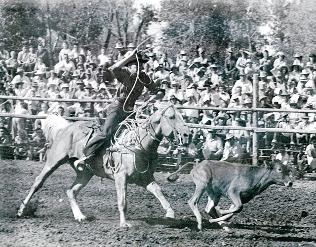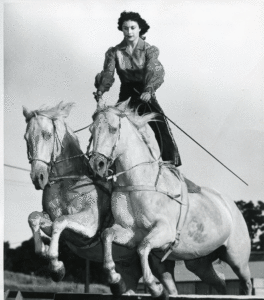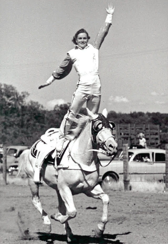 Lydia was forced to stay home most of the time as a tot with her grandfather, John Hickey, due to poor health. “I had no stomach lining when I was born,” said the 80-year-old, who now resides in Wayne, Oklahoma. “I drank goat’s milk and built up my resistance.” She finally grew out of the condition when she was ten years old and learned the art of trick riding and roping. “My dad taught me trick roping and my mom taught me trick riding,” she said. Rodeo season back then didn’t last all year like it does now – her parents were gone from April until September and the other months they were home. When they were home, they trained horses that went on to perform in wild west shows, movies, circuses, and elsewhere.