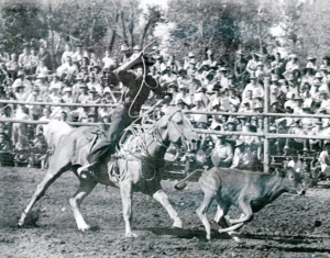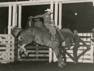 Lydia Moore was raised in a rodeo family in Missouri. Her parents, Hazel and Percy worked for many rodeo and wild west show companies traveling the country with her older sister, Maudie, and younger sister, Percyna in tow. Maudie was a trick rider and roper and Percyna had a goat act. In fact, Percyna was actually born in a tent while on the road for the Colonel Jim Eskew Wild West Show.