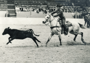 Her parents, Hazel Hickey Moore, a noted circus equestrienne, who gravitated towards the wild west show side of entertainment when she married her husband, saddle bronc rider, and steer wrestler, Percy Moore, both instilled in Lydia a love of horses and all things western. Famed trick roping performer, calf roper, and steer wrestler, Billy Buschbom, also helped Lydia with her trick and fancy roping and gifted her with her first set of ropes. “The Buschbom’s and my family were very close friends and worked for many different wild west show companies.” As a youngster, Lydia performed with her family in dressage and trick roping acts, and won many talent contests as a teen with her skills.