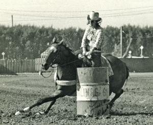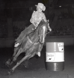 Lydia was introduced to barrel racing by accident. “The annual St. Louis Fireman’s Rodeo produced by Tommy Steiner, was in town around the early 1960’s. Wanda Bush, Fanny Mae Cox, and Boots Tucker, all barrel racers from Texas, were in town for the rodeo. They didn’t have enough barrel racing contestants, which was a new event for the rodeo. Wanda reached out to a local horse facility, Valley Mount Ranch, since Wanda knew they were starting to have barrel races at that arena. Lydia was one of the ladies invited to enter.