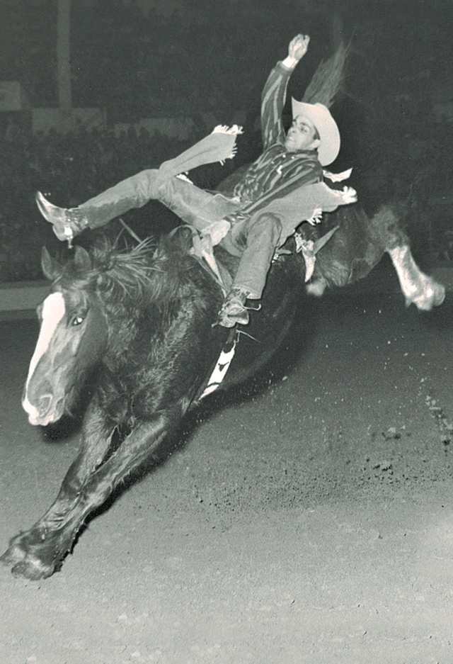 Billy won the state high school All Around Champion in 1958, competing in steer wrestling and bareback riding. From there he went to the National High School Finals in Sulphur, Louisiana. “I was way in lead for all around; came off my second bull and broke my arm.” He was in the hospital in Lake Charles for ten days. While he was there, the coach from McNeese State College offered him a rodeo scholarship. “I went there a year and a half – got along good – but had ants in my pants and had to get back to rodeo. Fame and fortune were waiting.” A year into his rodeo road, in December of 1961, Billy was drafted into the Army, where he served as a medic. “How they made a medic out of the bull rider is a wonder.” He spent his time after medical school in Alaska. “I went to eight rodeos up there, winning the bareback at all of them, and won the All Around at the Anchorage rodeo.”