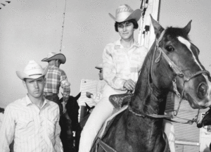 After her reign, she lived in Arizona for ten years. During that time, she continued to pursue her career in front of huge crowds and television; commentated for the NFR on and off since 1976, commentating for PBR for 12 years, 26 shows a year; announcing the Houston Livestock Show and rodeo – the first woman to announce that event. “I don’t like being a woman announcer,” she admits. “I like being a sideline reporter where I can do some investigative stuff.” She ended up in Ft. Worth to announce a rodeo. “That’s where I met Billy.”