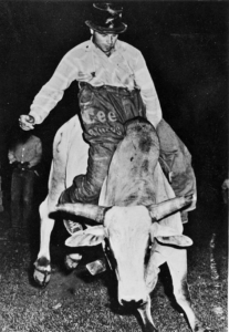 Billy went right back to rodeo when he got out, starting off winning at the winter shows, but then hitting a cold spell and just getting by. He was able to make one NFR qualification in the bull riding, 1966. “I had a great year in ’66, leading one or two for the world championship most of the year, ending up fourth.” He had a job offer in 1967 and decided to take it, moving to Medora, North Dakota to start a show there. At the entrance to Teddy Roosevelt National Badlands Park, Medora is a tourist town that operated in summertime. The ranch/rodeo show was educational to the public and Billy remained there for two years. “I’d go to Spring rodeos and was approached by Harry Knight and Gene Autry to buy their rodeo company.”