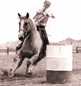Pam was raised on five acres in Las Vegas, Nevada; considered a ranch. Her family of four had no involvement in horses until Pam and her sister, Lynn, decided to give it a try. Her parents bought Rebel and Rio, quarter horses that were used to pull a wagon up and down the Vegas strip for advertising. Pam and her sister rode the $300 horses bareback for the first nine months – with no clue how to care for or even ride. Those two horses shaped Pam’s respect and love for horses and forever changed the direction of her life. She joined 4-H, showing her horse and entering all the events associated with the county fair, which included speed events. “They had 8 events; four speed and four show. One year I won high point in all 8 on the same horse,” she recalls.