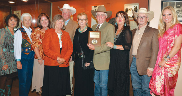 Haythorn Ranch Co.,recipient of the AQHA’s 50-Year Legacy Breeders Award,2009, for fifty consecutive years of registering AQHA horses. (left to right): friend and fellow steer roper Buddy Cockrell, his wife Geneva Cockrell, Londa and Harry Haythorn, Howard, and AQHA past president Jim Helzer. – Courtesy of the family