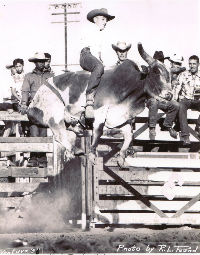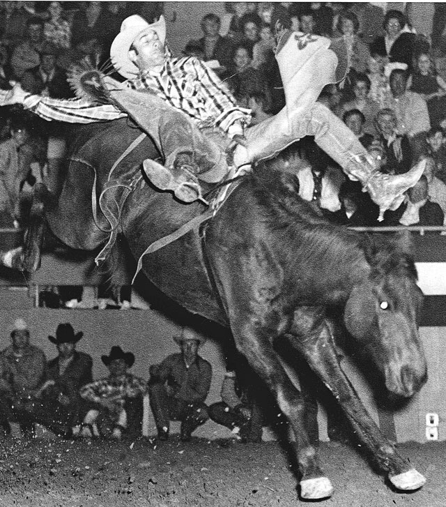 After graduating from Las Vegas High School in 1954, Rollie went pro. For a while, he didn’t have to buy his Rodeo Cowboys Association card; Chuck Shepard, a judge, would waive the fee for him at the rodeos Chuck was at. One time, in Salt Lake City, June Ivory cornered Rollie, telling him Shepard wouldn’t be there, so he’d have to buy his card.