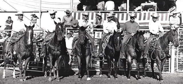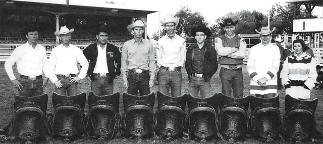Top 6 contestants at the 1963 NFSR: Six contestants at the 1963 NFSR. From left to right, Everett Shaw, Stonewall, Okla.; Joe Snively, Pawhuska, Okla.; Howard Haythorn, Maxwell, Neb.; Don McLaughlin, Ft. Collins, Colo.; Sonny Davis, Kenna, N.M. and Glen Nutter, Thedford, Neb. – Ferrell
