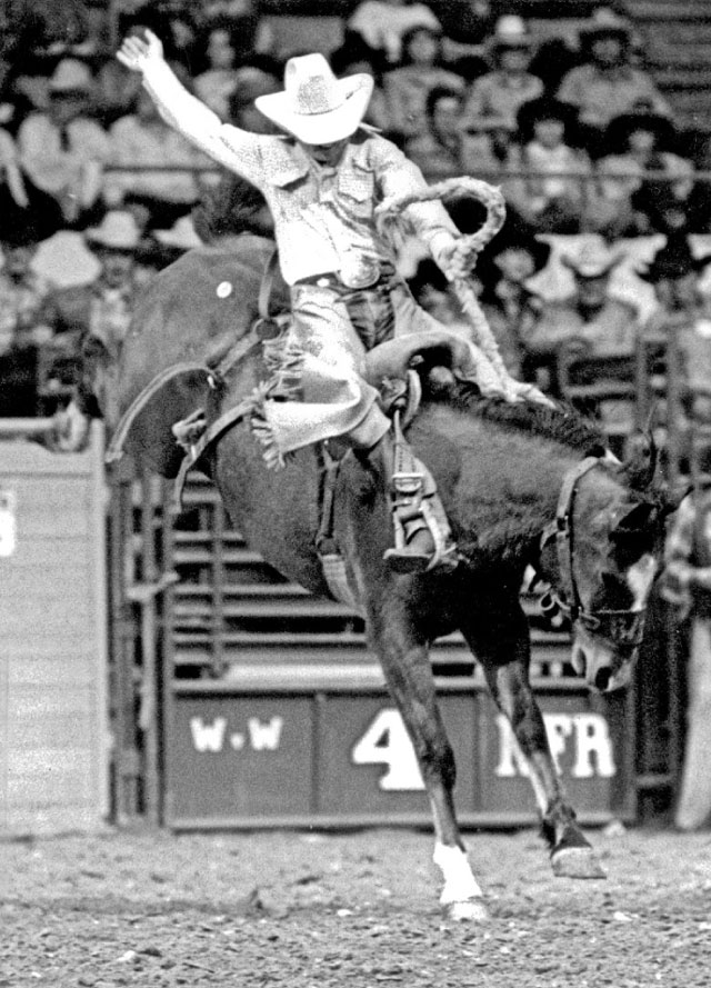 Butch continued practicing on anything that would buck and traveled to rodeos with his older brother or his good friend Charles Malcolm, a bull rider who also helped Butch in the bareback riding. In 1966, Butch bought his IRA card and ventured into Florida for several rodeos, where he met Harry Watt of Meeker, Colorado. “Harry rodeoed for a living, and I told him I was going to graduate from high school and (asked) what would be the chances of me getting in and going to rodeos with him. He’s a very plain-spoken person, and he said, ‘Just tell me where you want me to pick you up. But I tell you right now, you hold your end up or you can go home.’” Butch graduated and left the same night on a Greyhound bus to meet Harry. “My mother, Pauline, was standing in the door just bawling. I stayed in contact with her and my oldest brother, and I’d call once a week.”
