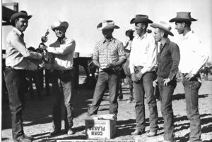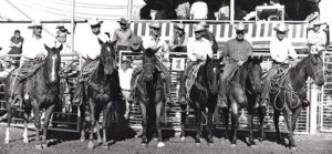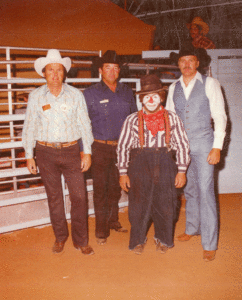 (l to r) Co-Chairman Gail Gibson, Chairman Rollie Gibbs, John Taylor and Co-Chairman Don Helm. The 1987 Elk’s Helldorado Rodeo in Las Vegas, Nevada – courtesy of the family