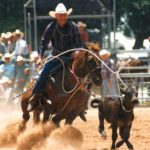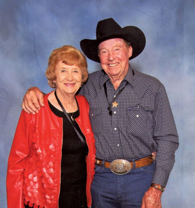 In 1954, his first year of college, the Colorado A&M team won the national championship, and John won the National Inter-Collegiate Rodeo Association’s Steer Wrestling title. In his sophomore year, he won second place, and his third year of college, he won the title again. The Colorado A&M rodeo athletes knew how to get lots of points. In those days, there were no college regions and students could compete anywhere in the nation, “so some of us would get in the car and go to a rodeo and get on other people’s horses,” John recalls. Fuel was a quarter a gallon. “One weekend, we had a team 30 miles from the New Mexico border, and a team 30 miles from the Canadian line.” Because they borrowed horses, they could travel easier. “The Texans, if there were six on a team, there were probably six outfits, because they all hauled their own horses. We had an advantage.”