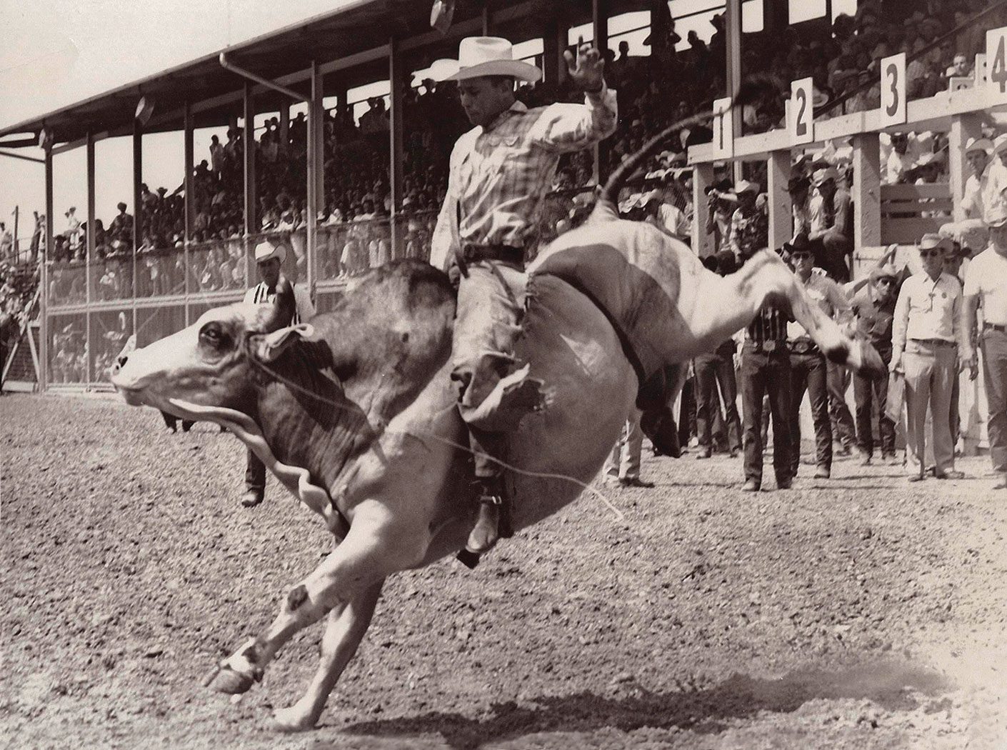 He rode bulls until 1964, quitting because he had married. He rode bareback horses for another ten years, and steer wrestled till he was in his forties.