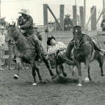 After high school graduation in 1953, John headed west. His interest in agriculture took him to Colorado A&M (now Colorado State University), in part for the education, and in part for their rodeo team. When the team was chosen that fall, John was not on it. “I was pretty broken up about the deal,” he said. In those days, a person could compete on the team or individually, so John went to some rodeos by himself and won. He was working three events: the bareback riding, steer wrestling, and bull riding. That spring, he was chosen for the team. Being voted on the team was done partly for a person’s talent and partly for if they had wheels: “In those days, the team was picked by the people who were going to rodeo,” John says. “You put your name on the board, and the events you worked. And then each person who had their name up there got to vote. So you voted for somebody that had a car, you voted for yourself, and you voted for whoever you thought would be the best cowboys.”