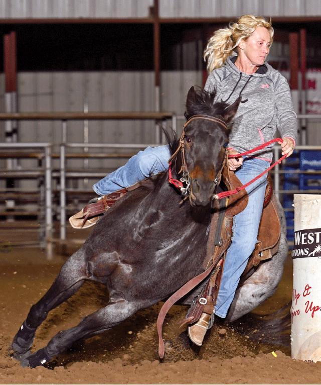 “He came from Sara Cheeney, who trains futurity horses,” explained Tara. “I bought my other good barrel horse, Peanut, from Sara, and I’d watched Painted Fling at some futurities and bought him two years ago. I’ve never gotten along with psycho horses and he’s real quiet. Nothing really bothers him too much – he’s real push style and he’s been pretty easy to ride.”