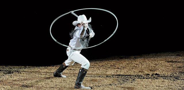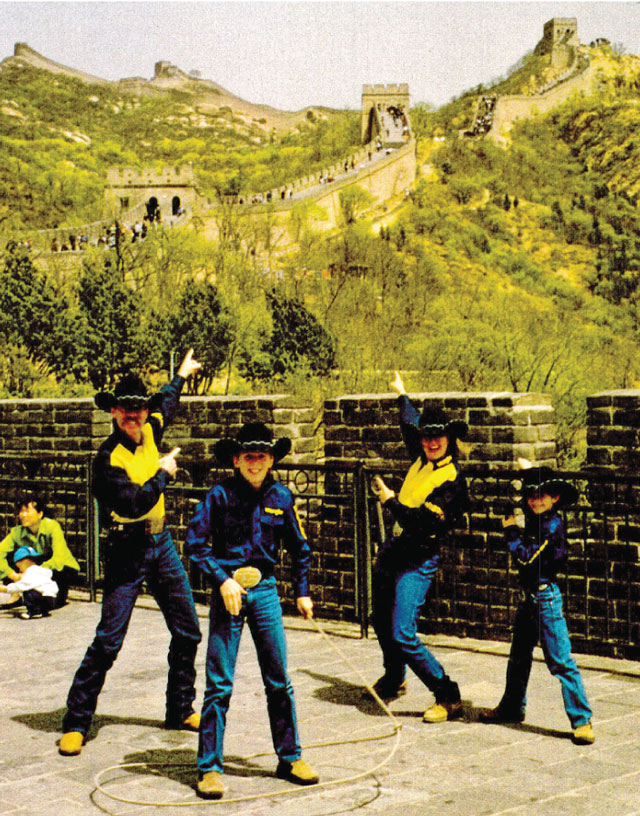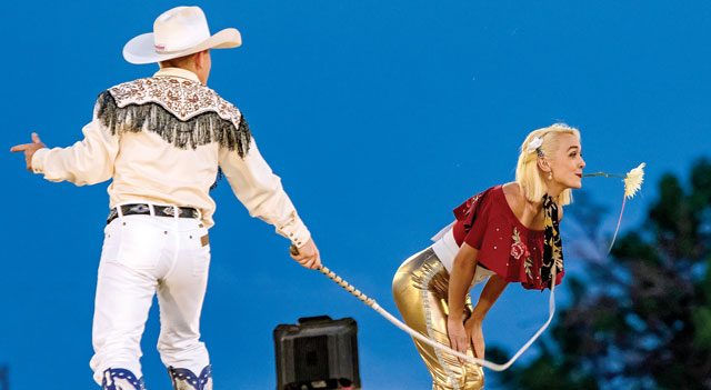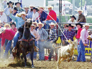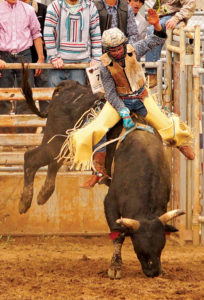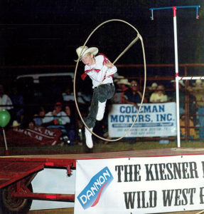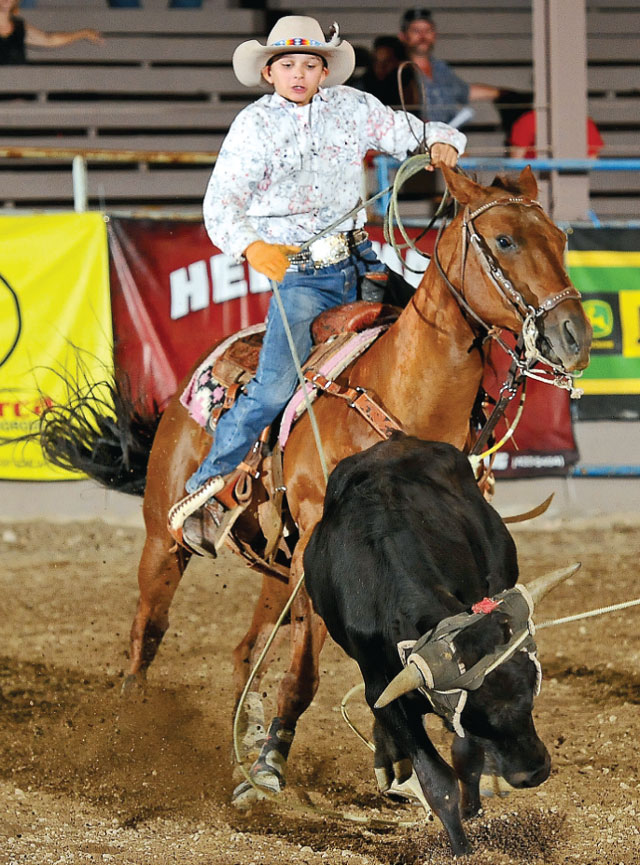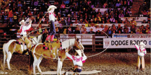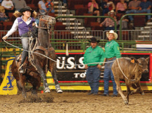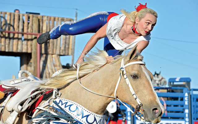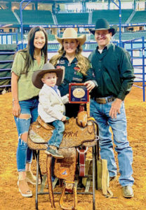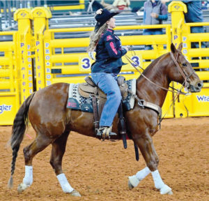 “He’s the guy I’m going to end up with,” said Bethany Iles, who started 13 years ago as a trick rider. “My family was not rodeo – we had the white picket fence house.” After taking horseback lessons at 9, for about three months, the lady who was her coach now was about to get married and they put on a little trick riding show for the people trail riding. “My twin sister (Brittany) and I decided that’s what we wanted to do. We took lessons from her and about a year later we were doing some rodeos around Missouri.” When they were 18, they started trying to get their pro card. “She had a couple wrecks; she broke her back and neck and that stopped her trick riding.”