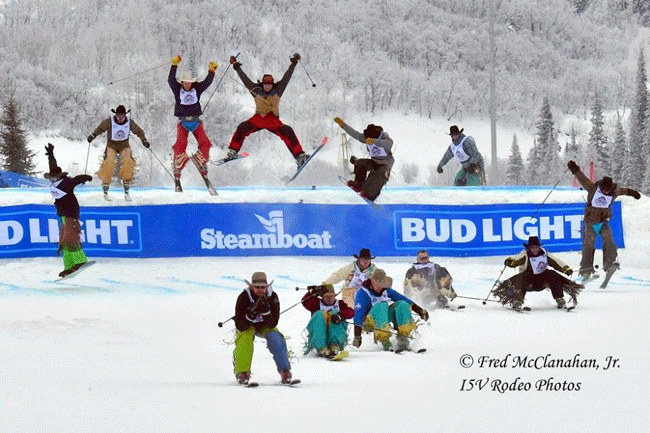 For the second year in a row, Grant Denny, the older brother of WNFR bareback rider Wyatt Denny, was the winner of the slalom competition at the 43rd annual Cowboy Downhill in Steamboat Springs, Colo., Jan. 16. Denny clocked a 27.75-second time to edge fellow bareback rider Joel Schlegel (28.46). Saddle bronc rider Jesse James Kirby of Dodge City, Kan., won the Stampede for the second-consecutive year. Best crash of the day went to 2017 Miss Rodeo Canada Ali Mullin. There were 92 cowboys and cowgirls participating in the event. The Cowboy Downhill is held in conjunction with the National Western Stock Show and Rodeo in Denver, and began in 1975. The Downhill has become a fundraiser for the Justin Cowboy Crisis Fund, which provides financial assistance to injured PRCA cowboys. JCCF President & CEO Cindy Schonholtz attended the Downhill, and said that more than $6,000 was raised through a silent auction and merchandise sales.