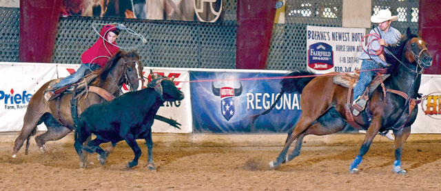 My philosophy is it does you no good to rope cow after cow in the practice pen if you can’t get the excitement, nervous, or sticky fingers you will feel during competition. You have get your heart rate up and simulate the feeling you have at a roping. On our very first steer at the roping, we drew well and he roped two feet and got to do the Junior layback – he’s a huge Junior fan. I broke the barrier on our second steer, and he thought he had to go fast and hit a front leg. I was super proud of our first steer and the way he’s been roping overall.