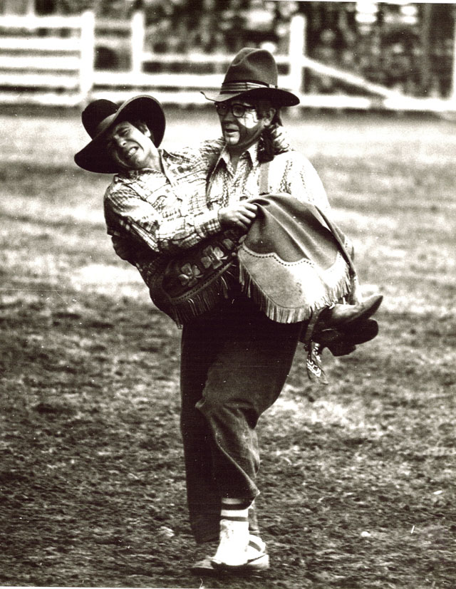 George and Quail Dobbs, clowned the American Bi-Centennial Rodeo, in Philadelphia, PA in 1976.  George put Quail’s make-up on him the first time he clowned.  George and Junior Meek performed at the Royal Easter Rodeo in Sydney, Australia in 1971.  In 1977 he was made an Honorary Shriner by the Ardmore, OK, Shriner Club, the first person to get this award by that chapter.  He appeared in the Academy Award Winning Documentary Film of 1972, “The Great American Cowboy”.  He was a judge for the Miss Rodeo America Pageant in 1988 and 1989.