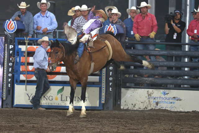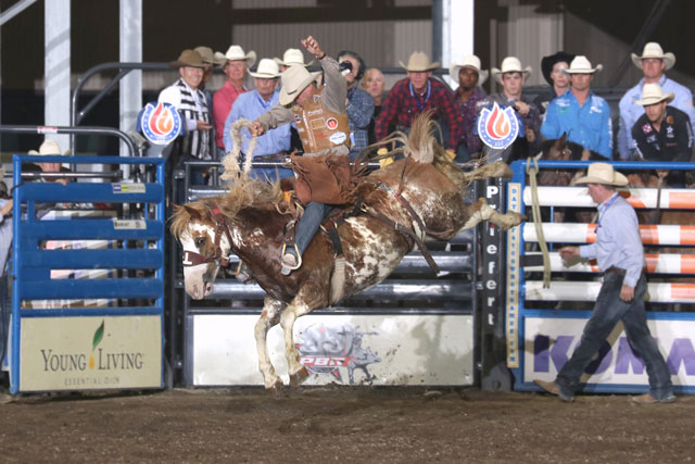 Bareback riding:1. Wyatt Denny, Minden, Nev., 88 points on Sankey Rodeo’s Sozo, $50,000; 2. JR Vezain, Melstone, Mont., 85 on Andrews Rodeo’s PTDS Power Play, $25,000; 3. (tie) Ty Breuer, Mandan, N.D., on Sankey Rodeo’s Thunder Monkey, and Tristan Hansen, on Summit ProRodeo’s Revolving Door, 84.5 points, $9,000 each.