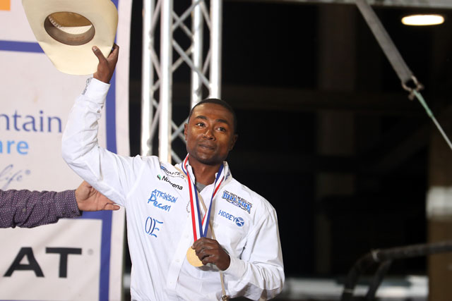 There was a new man atop the podium in the steer wrestling as defending champion Ryle Smith received a no time. Justin Shaffer of Hallsville, Texas, and a former Ram National Circuit Finals Rodeo Champion won his first gold medal and picked up $50,000. He stopped the clock in 4.2 seconds. Close on his heels was Rowdy Parrott of Mamou, La., with a 4.4 and Bridger Anderson of Alva, Okla., with a 4.5.