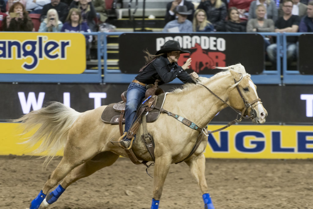 Barrel racing: 1. Hailey Kinsel, 13.17 seconds, $26,231; 2. Sydni Blanchard, 13.39, $20,731; 3. Amberleigh Moore, 13.42, $15,654; 4. Taci Bettis, 13.54, $11,000; 5. Ivy Conrado, 13.60, $6,769; 6. Lisa Lockhart, 13.76, $4,231; 7. Nellie Miller, 13.85; 8. Tiany Schuster, 13.92; 9. Kathy Grimes, 13.97; 10. Tillar Murray, 14.0; 11. Brittany Pozzi Tonozzi, 14.08; 12. Kellie Collier, 14.25; 13. Stevi Hillman, 14.35; 14. Kassie Mowry, 18.49; 15. Kimmie Wall, 21.83. Average standings: 1. Nellie Miller, 137.32 seconds on 10 runs; 2. Ivy Conrado, 137.4; 3. Lisa Lockhart, 138.12; 4. Tillar Murray, 142.89; 5. Brittany Pozzi Tonozzi, 144.01; 6. Hailey Kinsel, 144.95; 7. Kathy Grimes, 149.55; 8. Kellie Collier, 153.08. World standings: 1. Nellie Miller, $308,498; 2. Hailey Kinsel, $288,092; 3. Tiany Schuster, $285,339; 4. Amberleigh Moore, $240,806; 5. Ivy Conrado, $232,521; 6. Tillar Murray, $203,904; 7. Lisa Lockhart, $203,550; 8. Stevi Hillman, $199,619; 9. Kassie Mowry, $189,047; 10. Taci Bettis, $162,446; 11. Brittany Pozzi Tonozzi, $161,173; 12. Kathy Grimes, $150,978; 13. Sydni Blanchard, $144,516; 14. Kellie Collier, $108,146; 15. Kimmie Wall, $86,294.