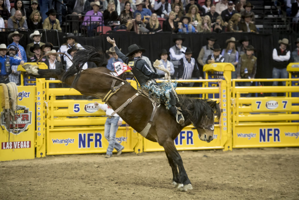 LAS VEGAS – For the second year in a row, bull rider Sage Kimzey did what no one has done before. He actually did two things nobody has done before. Photos by Steve Gray