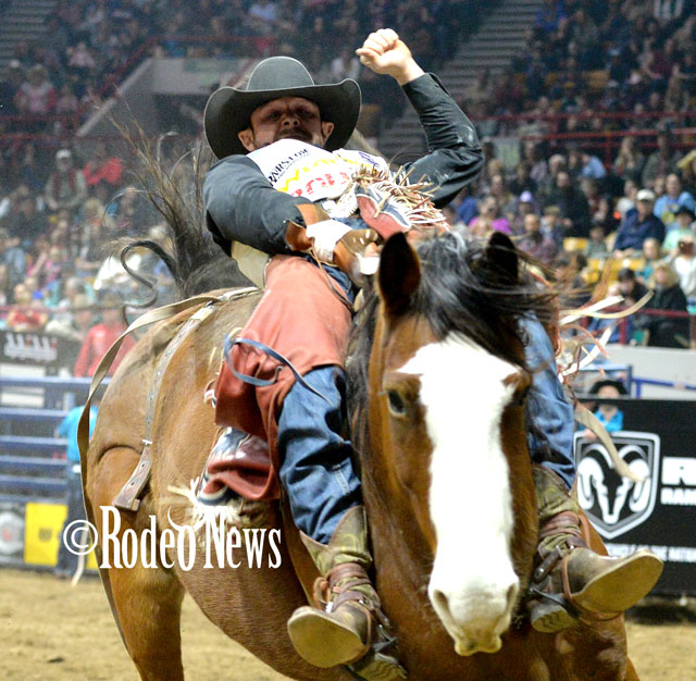 Saddle Bronc Riding: 1, Audy Reed, Spearman, Texas, (Denver) 84.5, $1,000. 2, CoBurn Bradshaw, Milford, Utah, (Pueblo) 84, $700. 3, Jade Blackwell, Piedmont, South Dakota, (Colorado Springs) 76, $600. 4, Ty Manke, Piedmont, South Dakota, (Denver) 75, $500.