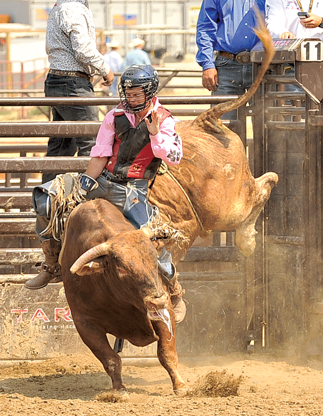 David Berry has put on bull riding schools for more than 20 years. “I wasn’t a world champion bull rider; my claim to fame was the PRCA Resistol Rookie of the Year in 1988 alongside Ty Murray,” said the 51-year-old. The next year, in the short go of Cheyenne he broke his jaw. “That was the same year Lane Frost died – the bull after me. Growing up in Oklahoma all you heard about was Lane Frost. His school helped me a lot – he gave me the time of day.” David took his love of bucking bulls and started raising them and helping others learn how to ride. “I recognized the heart and try in Nathan – you can help coach to ride, but you can’t teach them to try. They have to bring that on their own.” David saw Nathan’s work ethic and dedication to learning. “Talking about riding a bull and getting on one are two different things. I can’t remember Nathan ever talking about riding a bull; he just gets on them. And he does everything with a grin on his face.”