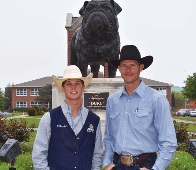 Both Chad and his brother, Shane, went to college at SWOSU. After college, Chad stayed around and Shane moved to Nebraska. Chad raised bucking bulls and would call the college to get his young bulls ridden. “Nathan is a good kid,” said Chad. “He’s talented and takes care of business- that’s the kind of person I wanted to sponsor. Anytime I need help, Nathan comes over and helps. It works out really great for both of us. He’s a really good kid and his fiancé is good as gold. He’s a winner, but he’s not arrogant and that’s the kind of guy I want to represent me and our ranch.”