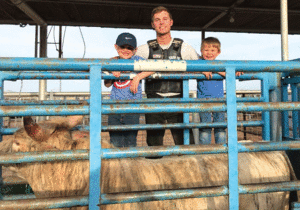 Nathan remembers watching his dad and uncle ride when he was young, but he wasn’t formally introduced until one day when Craig offered to let Nathan and his brother get on a steer. “We didn’t know what we were getting into. My brother was a football star, and I thought it was fun, but didn’t ride one steer for the entire year to date, not one.”