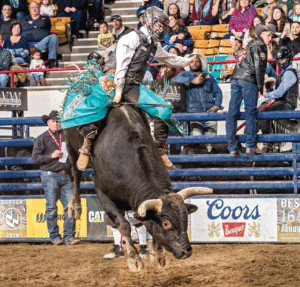 Nathan grew up in a small 2A school, where everybody knew everybody, with his dad, Craig, and his older brother, Dylan. He came from bull riding stock, both his dad, Uncle Glenn, and grandpa, Corky Hatchel, rode bulls, but he wasn’t allowed to get on one until he was 13. Instead, he concentrated on sports – basketball, football, and baseball. He played on a traveling team in the summer and enjoyed basketball the most. “That’s what I played until my junior year of high school – then I put my focus into riding bulls.” His goal was to get a full ride scholarship, and that’s what he did at SWOSU. He competed for Oklahoma State High School Rodeo, making the National High School Finals both his junior and senior year. He was fourth in the nation his junior year, and was riding with a torn MCL his senior year, so he didn’t ride as well. “I got that fixed and went to college,” he said.