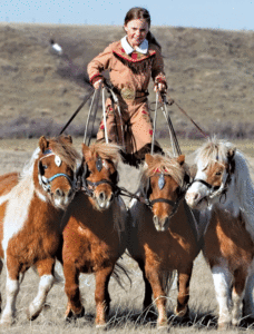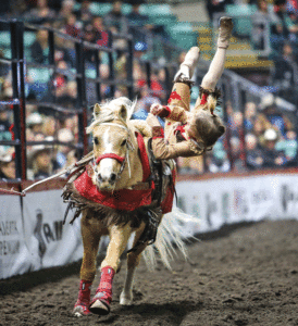 Piper is currently mastering four ponies, and has been working on that for a year. She began her career as a trick rider at the age of four. She added Roman Riding a year later, hopping on her brother’s ponies one day in the arena. “My brother was driving a wagon and I wanted to be part of that, so I just jumped on.” She relies on her brother, Cash, for the ponies. Cash doesn’t mind anymore because the ponies aren’t fast enough for him to use on the chuck wagon. Chuck wagon racing is a Canadian thing, and he started with ponies, and is now moving to Shetlands. Along with the rodeo events, both Piper and Cash do a lot of work on the ranch, which has been in the family for five generations. The family lives in Wardlow, Alberta, a small ranching community, three hours from the border in the middle of nowhere. Between Brooks and Hanna, the community is known for the Calgary Stampede rodeo horses that make their home there as well. Most of their family lives around the area.