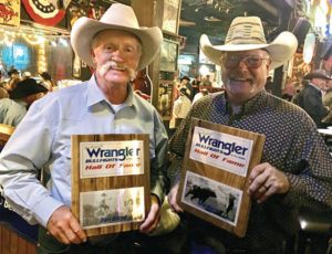 Those honored this year were: Leon Coffee; George Doak (deceased) with son George Jr. accepting for his dad; Eric Viers; Darl Allred; Steve Mowry and Kirby Birney whose acceptance was told by his daughter, Cody, Miles Hare and Michael ‘Smurf’ Horton. Stock Contractor of the year was Mr. Harry Vold (deceased) who was represented by his daughter, Kirsten who also accepted the Bull of the year, Crooked Nose, owned by Harry Vold.. Barrel Men honored were Tom Feller and John Taylor. The Resistol Supporting Legend Award was given to Jim Sutton and David Allen.