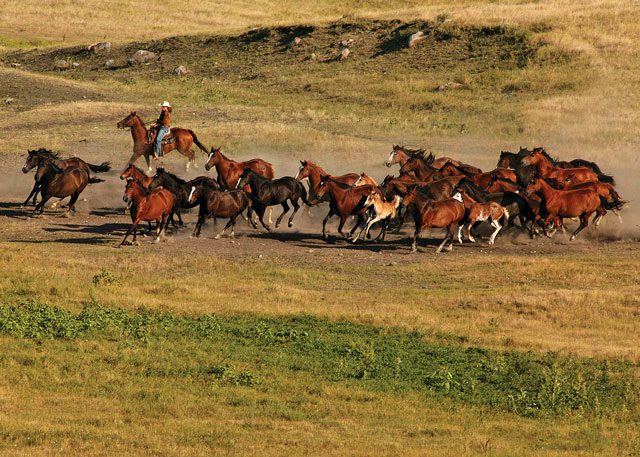 The history of the Suttons starts even before South Dakota became a state. Amy’s great-great grandfather, Edwin Sutton, homesteaded the family’s ranch in 1883, set in the hills near the Missouri River. He started putting on rodeos Sunday after church for the township using his ranch stock. By the late 1920s, he and his sons were producing three-day rodeos on their ranch, where a young Lawrence Welk from North Dakota occasionally stopped to contribute his sparkling music. Edwin’s son, James, ushered the rodeo company into the next generation by becoming a member of the PRCA. He later became the first stock contractor to be inducted into the PRCA’s Hall of Champions in 1982. James and his son, Jim, focused in on the breeding of the rodeo company’s livestock, particularly the bucking horses, which earned them several first runners up and three winners of the PRCA Horse of the Year. In the late ‘70s, Amy’s dad, Steve, who has picked up the WNFR five times, took over the ranch management. Amy was born soon after, going to her first rodeo at ten days old.