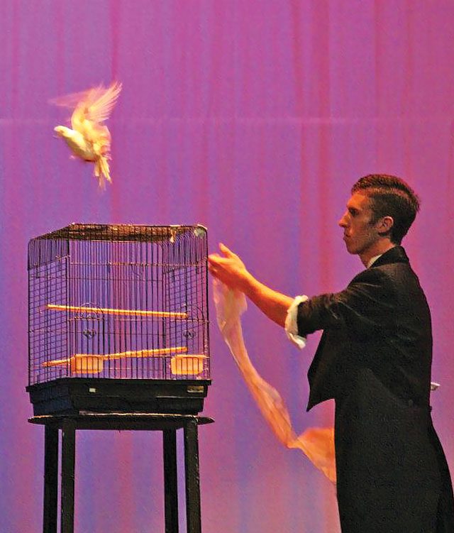 Steve Martin advises, “Be so good they can’t ignore you,” and 24-year-old barrelman, hypnotist, and professional stuntman, Austin Singley, took the advice to heart. Now in the middle of his second year as a PRCA barrelman, while also performing part time in Universal Studios’ WaterWorld, Austin has been developing and refining his panache since seventh grade. “I was pretty shy through elementary and kept to myself, but in seventh grade, I auditioned for the school musical, Grease, and that’s what really sparked the fire for performing,” Austin explains. His senior year of high school, Austin and several friends put together an illusion magic show, with all original illusions and routines, which they took on the road and performed in professional theatres around their home state of Utah.