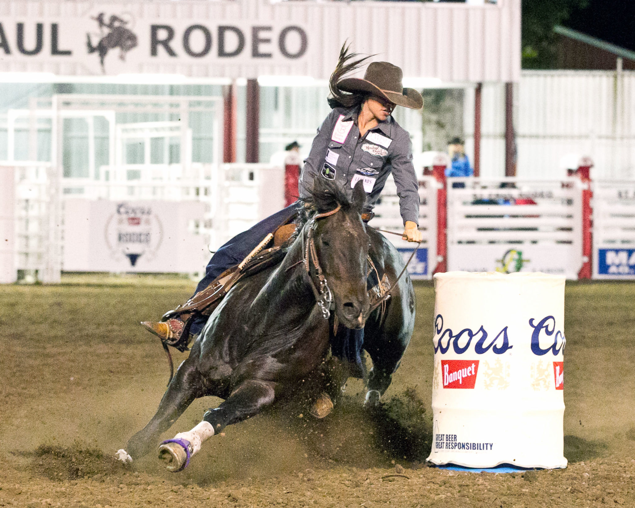 High On A Bronsin, an eighteen-year-old black gelding whose barn name is Splinter, carried barrel racer Bobbie Correa to the lead in the barrel racing at the 84th annual St. Paul Rodeo.