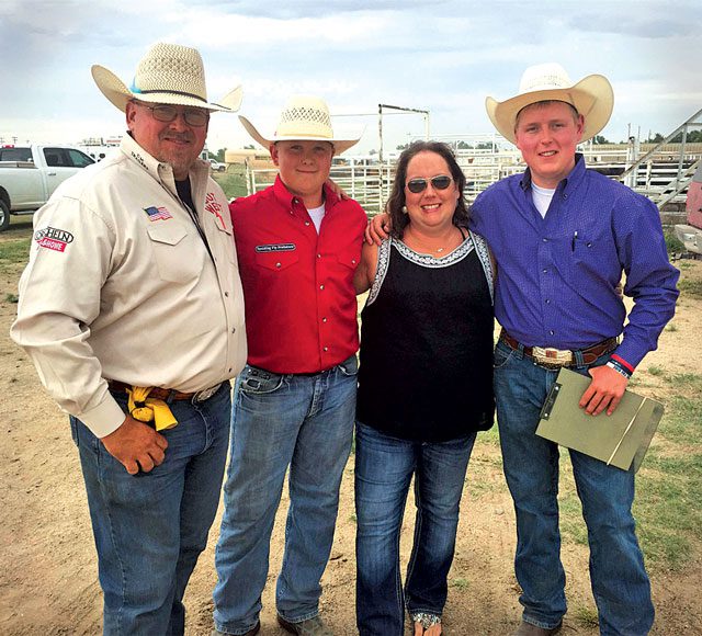 During the KPRA rodeo in Springfield, Colo., last summer, Garrison announced, while Hadley ran sound, Garrett judged, and Kim was a timer. Garrett’s goal is to judge both the NLBFR and the NHSFR in the same year, while Kim has helped the Little Britches secretaries with their local rodeos the past five years. She plans to continue after Garrison ages out. “I didn’t grow up rodeoing, but my family always had horses,” she says. “My mother was a paraprofessional in Garrett’s first classroom he taught, and she told me I should meet him when I came home from college for Christmas break. We hit it off, and the rest is history! Since I came to be part of the rodeo family, I see so much kindness and generosity. Everyone is more than willing to bend over backwards to help, and I want to pay it forward.” Kim is also the coordinator of the federal programs for her school district, helping migrant and ESL families, as well as coordinating buildings during testing season. Garrett teaches STEM (Science, Technology, Engineering, and Mathematics) to seventh and eighth grade students at Lakin Middle School, while teaching driver’s ed. in the summer, refereeing basketball, and umpiring softball. He has coached football for more than 20 years at both the high school and middle school levels, and became a wrestling coach nine years ago.