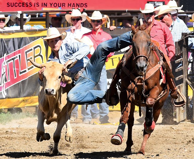 Gabe is heading back to the National High School Finals Rodeo to defend his 2015 Steer Wrestling Championship. “It really didn’t sink in right away,” said the recent graduate from Sacred Heart High School of his win last year in Rock Springs, Wyo. He is concentrating on making sure he is focused this year. “I am preparing myself as best I can to compete. It is more muscle memory – if I prepare myself the right way it’s easier to compete.” He slides the stick, jumps the dummy and chute dogs before he ever jumps a steer on a horse. He typically practices two to three hours a day. “I don’t practice every single day, but I do, at least three or four times a week.” He believes the horse has a lot to do with everything. “I have a lot of good luck with my horses. For a horse, you’ve got to get along, and me and my little brother can’t ride the same horses, we don’t always get along the same.” The horse he rode last year is Kid Rock, a horse he owns. “I bought him right before state finals last year and rode him at state finals and that was the first rodeo I rode him at. I bought him from Marcus Theriot (2016 CNFR All Around Champion) – he had three bull dogging horses at the time and he sold him. I got along with him right away.”