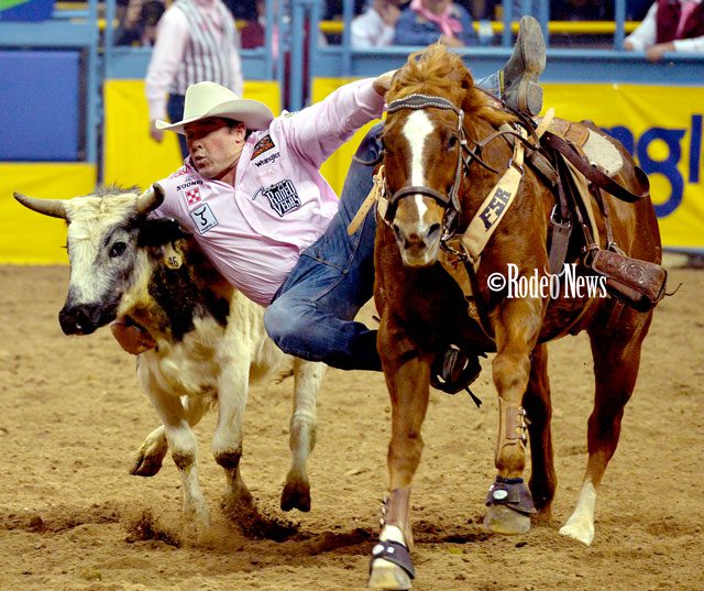 Steer Wrestling: First Round: 1. KC Jones, Decatur, Texas, 3.86 seconds, $3,690; 2. Riley Duvall, Checotah, Okla., 4.12, $2,337; 3. Cash Myers, Athens, Texas, 4.15, $1,599; 4. (tie) Christian Petigrew, Fort Sumner, NM; Shayde Etherton, Hico, Texas; and Jacob Edler, State Center, Iowa, 4.16 each, $1,148 each. Second Round: 1. Sean Thomas, Benton, Ark., 4.07 seconds, $3,690. 2. Cade Staton, 4.11, $2,337; 3. Josh Peek, Pueblo, Colo., 4.14, $1,599; 4. Benjamin Cox, 4.43, $1,353; 5. Josh Garner, Live Oak, Calif., 4.51, $1,107; 6. (tie) Justin Morehouse, and KC Jones, Decatur, Texas, 4.52 each, $492 each. Top 20 Qualifiers to Third Round: Luke Campbell, Riley Duvall, Cole Fritzlon, Josh Garner, Tyler Gibson, Stewart Gulager, Jule Hazen, Lane Holland 5. Tyler Gibson, Huntsville, Texas